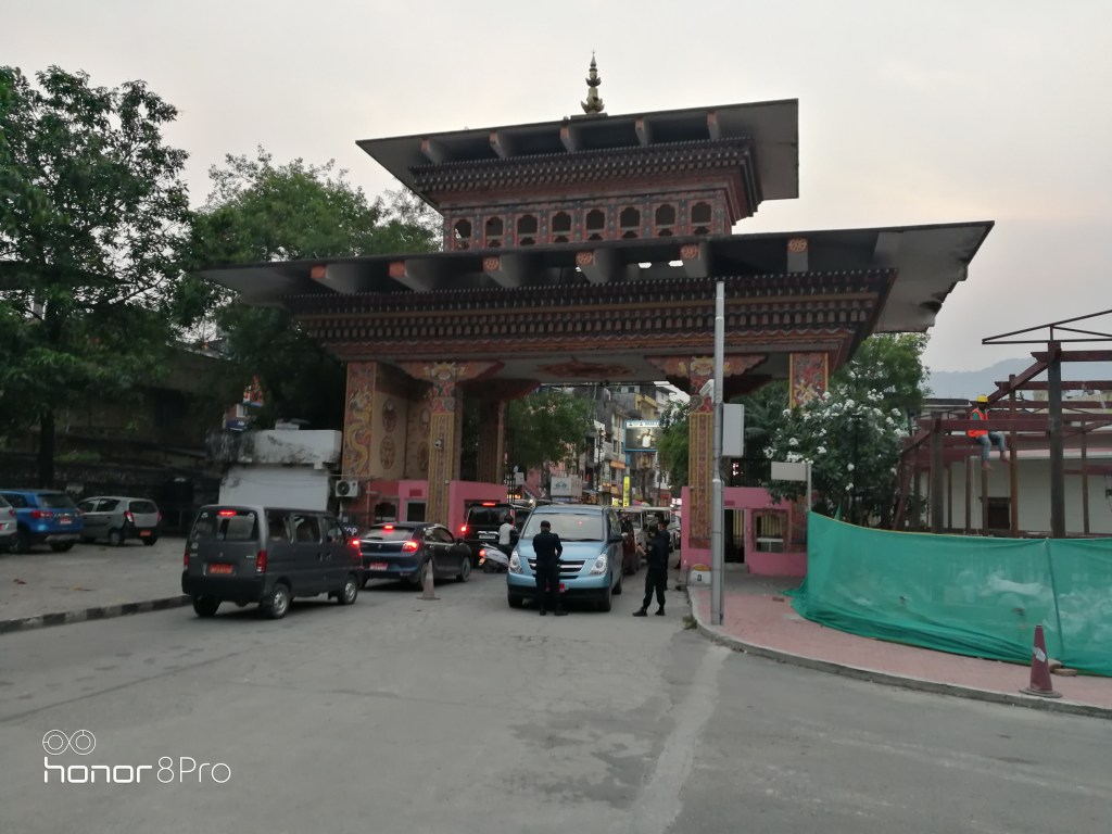Border town of Phuentsholing is the only place where I saw AC’s. Nice “pedestrian” immigration building and vehicle entry gate. One of the larger cities with 27K population. A wall, immigration building and a vehicle entry gate separates Jaigaon and Phuentsholing. Lots of Indians commute across the border for work in Bhutan daily. Sharing a few beautiful pictures from immigration building and streets. The board behind immigration building is an Indian business board (Techno) from Jaigaon. Interestingly, liquor shops and bars open before any other shops in Phuentsholing.