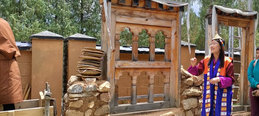 In Thimphu, visited National memorial Chorten, a beautiful clean stupa shaped structure. Had a long-distance glimpse of Tashi Choe Dzong, A place close to where the King lives in Bhutan. Visited Simply Bhutan to get some glimpse of Bhutanese way of living. See Pics of how soil is compacted before building a super-structure, Standard windows, Masks, Kitchen equipment, Dried food for winters, Bhutanese food plate, Suja (Bhutanese tea that has Yak Butter and Salt) Dances, Songs, Masks.