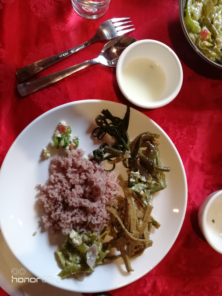 It is about 600-650 meters climb to the monastery at the height of about three thousand meters. As we started our drive, we saw a range of snow-clad mountains. Started our climb with rented walking sticks at the beginning of the climb. Very scenic and unique place. It took us about 8 hours to go up and return. About 2.5 hours in the restaurant on the way up and down together, and about 30 minutes at the top. Rest was all either a climb up or down. We were all able to complete it. Felt particularly good at the end of it. Pictures below are during the ascent.