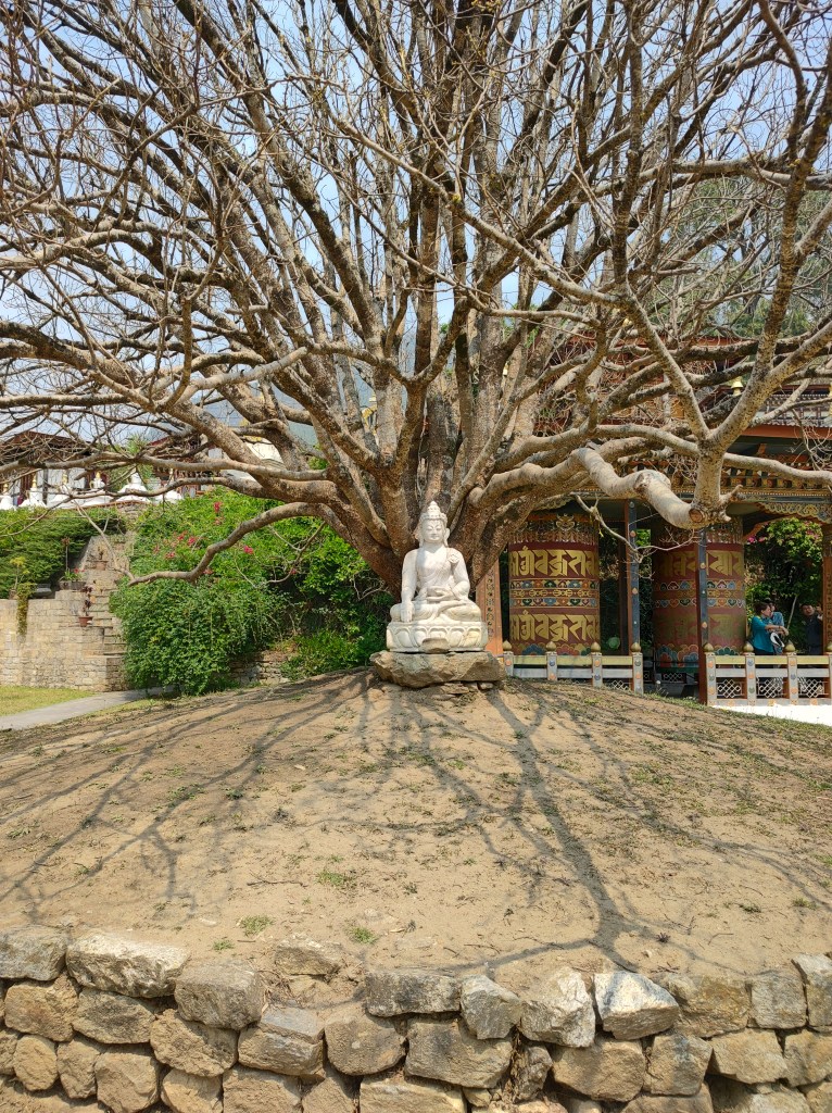 Started for Thimphu in the morning next day. Made a stop at Sangye Migyur Ling Lhakhang, a monastery. Two beautiful buildings. Climbed all seven floors of one of the buildings and saw multiple statues and paintings of gods, goddesses, and gurus. All internal walls had bright colour paintings. Also saw “chozum” (Bhutanese for “sangam” or confluence of rivers) for Paro Chu (river coming from the front), and Thimphu Chu (River coming from the right of pic). (Chu is river in Bhutanese). Pics below.