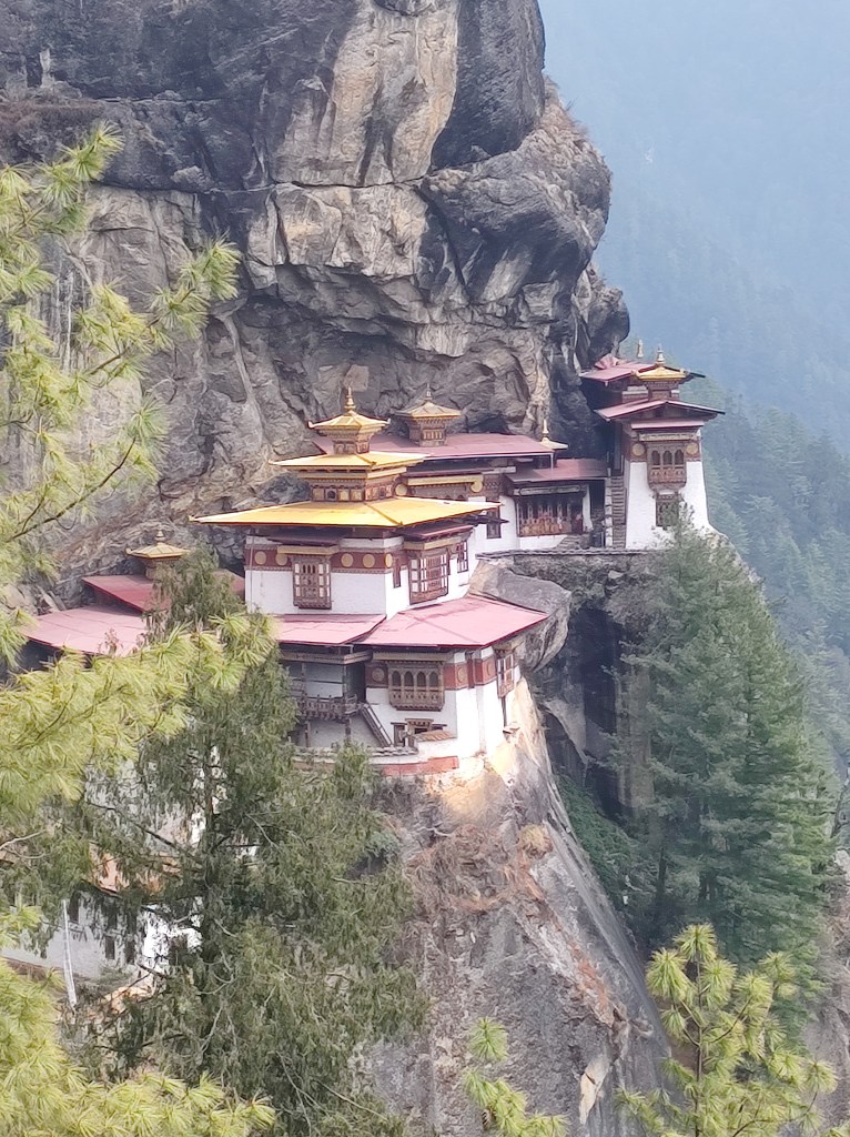 Our last full day at Paro was dedicated to Tigers Nest Monastery. This was going to be a test of my/our physical ability. About 3.5 Km long and 550 Mt climb. The climb is more than claimed 550 ft because one must climb up, then climb down (about 80-100mts) and then climb up again to reach this monastery. In my opinion, the total climb could be more than 700+ meters. Stunning views as we climb. The monastery is at a height of about three thousand meters.
