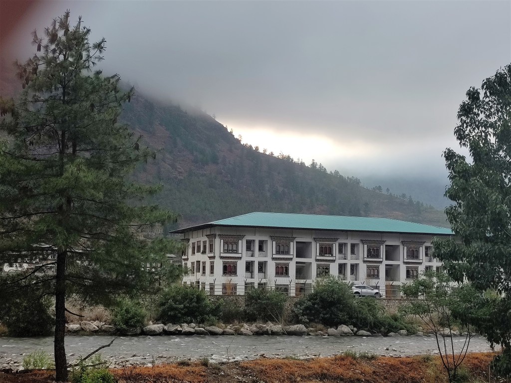 Thanks to the choice of hotels by ladies in the group, we had wonderful stay and views from hotels. In fact, in one of the hotels we spent more time in the open to sky restaurant, than in the hotel room. Our hotels had mostly women crew, including porters loading and unloading bags from vehicle. Sharing a few pics of the hotels and views from hotel area including Paro airport building and airstrip, Punakha Chu (river) and Paro Chu. Pics below.
