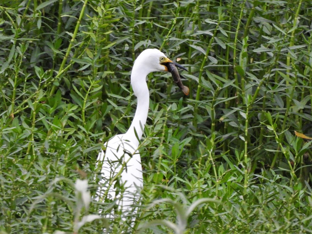 (Snowy?) Egret with a catch… Saulkere Lake, Aug 2023